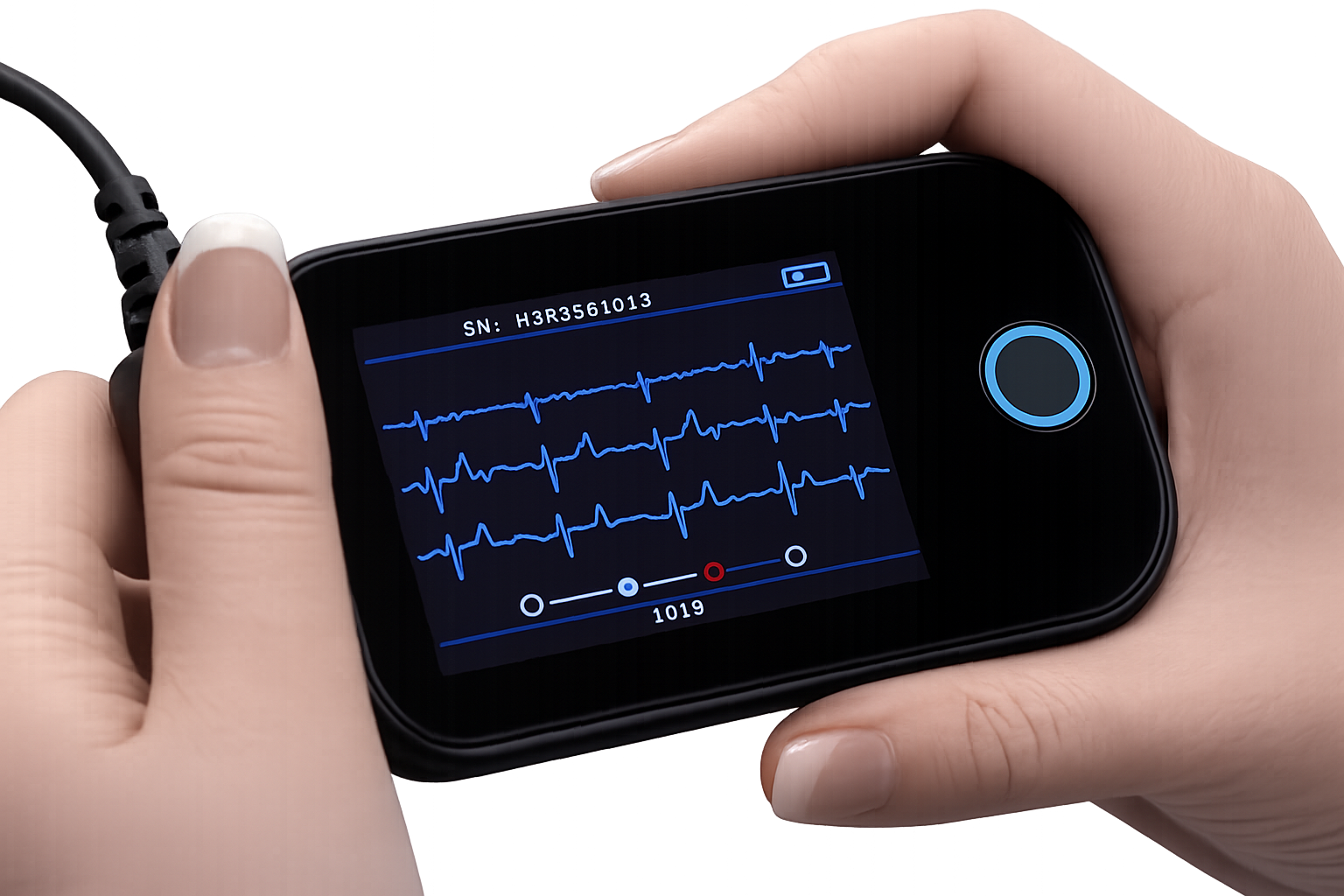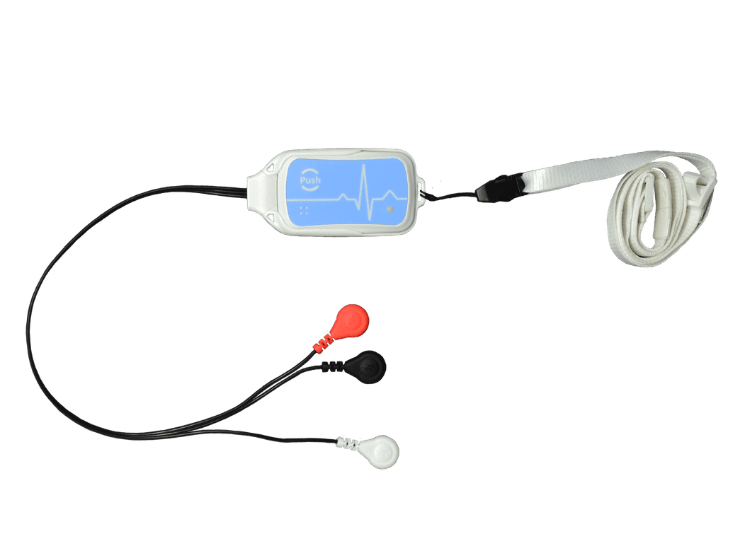 A compact ambulatory cardiac monitor used for extended ECG monitoring and event detection.